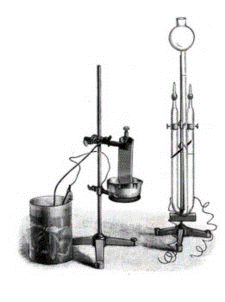 První elektrolyzér sestavený Carlislem a Nicholsonem