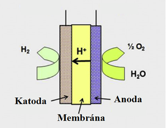 PEM (proton exchange membrane - protonově vodivá membrána) elektrolýza vody pracuje při teplotách 50-80° C a tlacích do 3 MPa. Napětí na elektrolytické cele se pohybuje v rozmezí 1,8-2,2 V. Jako separátor anodového a katodového prostoru slouží neporézní polymerní membrána schopná propouštět pouze kladně nabité ionty. Na anodě se z vody vyvíjí kyslík (rovnice 6). Vzniklé H+ ionty prochází skrz iontově vodivou membránu ke katodě, kde se redukují na vodík (rovnice 7).
