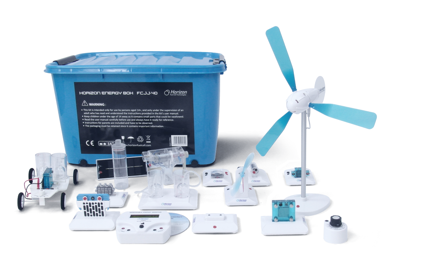 c) Elektrolýza vody je velice energeticky náročný proces. Z dodaného Horizon Energy Boxu vyberte obnovitelné zdroje energie, o kterých si myslíte, že dokáží elektrolyticky generovat vodík a připojte je k elektrolyzéru. Dokázal to některý? Pokud ano porovnejte jejich účinnost z hlediska množství vyprodukovaného vodíku za daný časový úsek, např. 1 minuta.